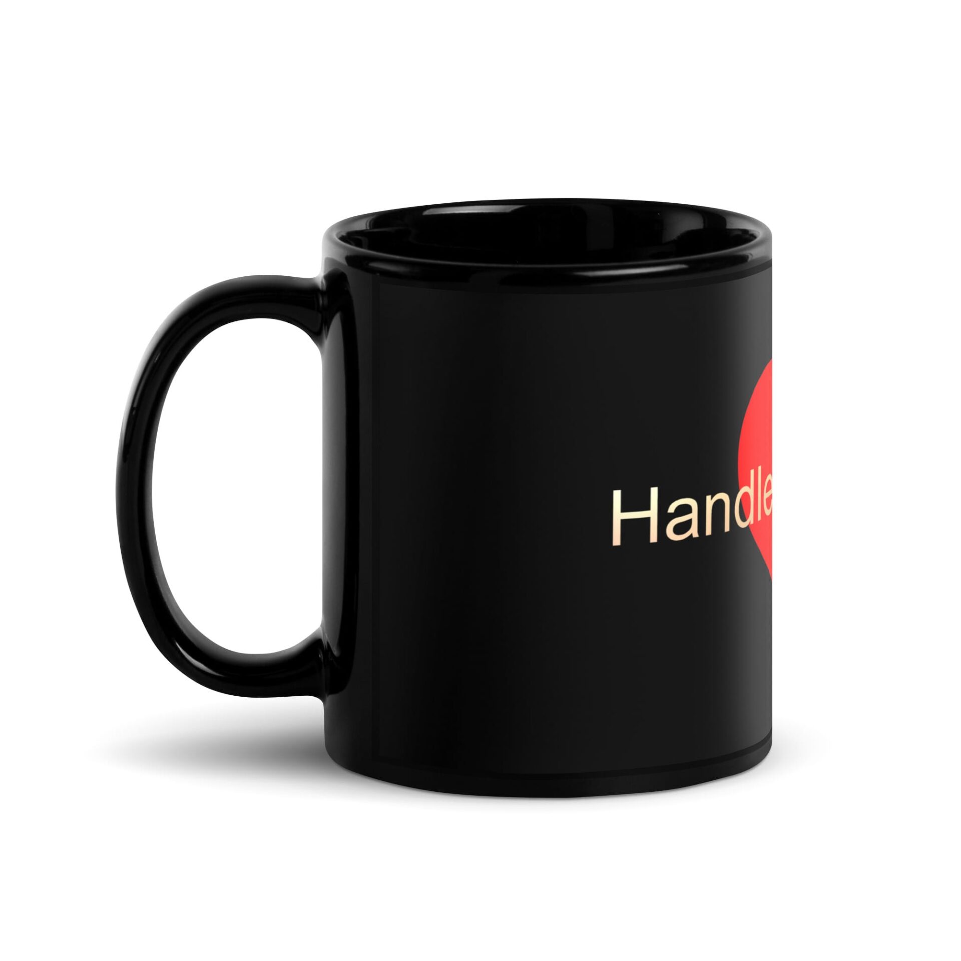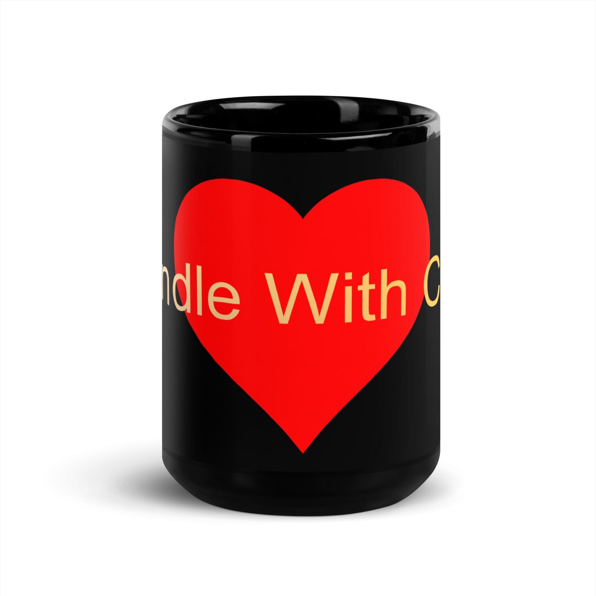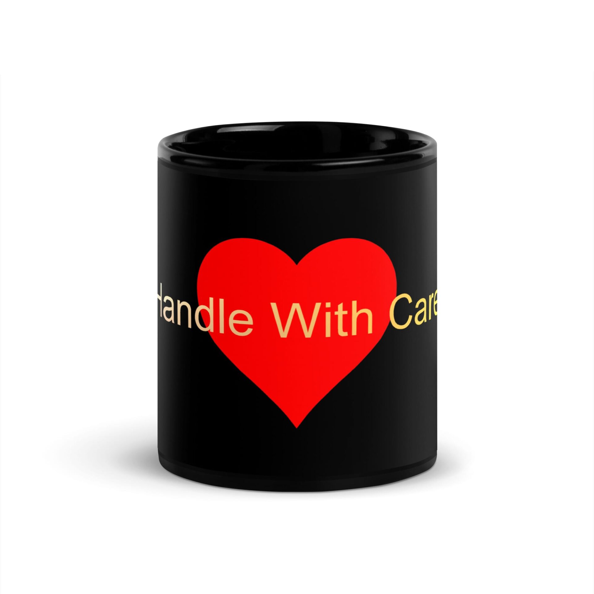 Black Glossy Mug – Handle With Care – Heart